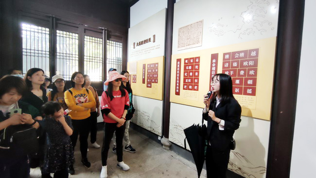 第二站,跟随着解說員的腳步,大家走進恢弘大氣的大禹陵,感受上古時代治水英雄大禹的偉人事迹;走進清幽肅穆的禹祠學習姒氏一族的曆史演變;走進供奉“華夏聖祖”大禹之神位的享殿閱覽其一生的豐功偉績。